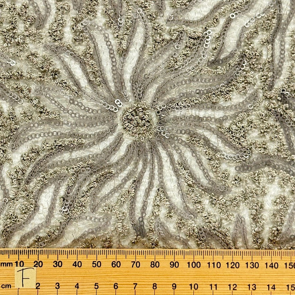 A delicate spiderweb with applique sequin and knotted embroidery detail create a striking special occasion option.
