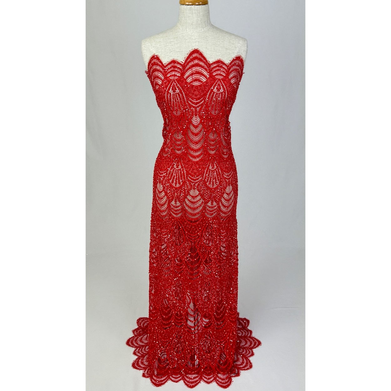 This luxurious couture lace features intricate hand-beading and sequin work sure to add a touch of opulence and glamour to any garment. Perfect for high-end couture dresses, gowns, and special occasion wear.