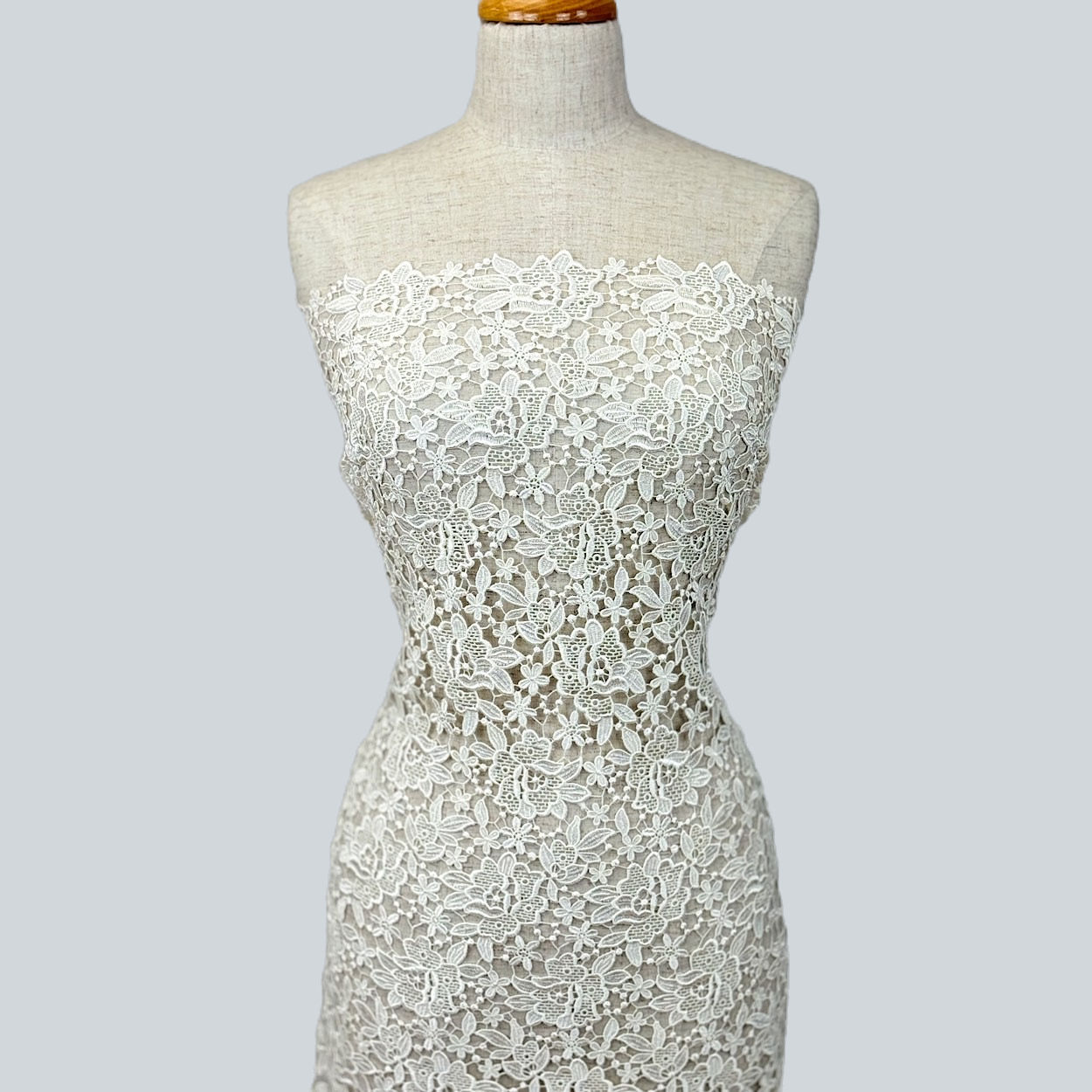 Traditional guipure lace in Natural colour with a detailed border on each side.