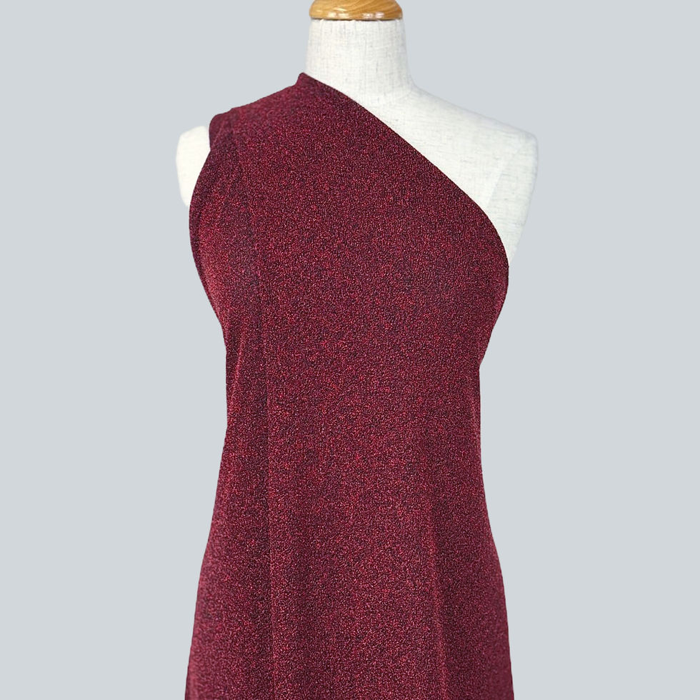 Glamour sparkle knit combines body, softness, drape, and stretch, making it an ideal choice for creating stylish and comfortable garments. The sparkle yarn is woven into the fabric and adds a beautful eye catching but elegant dimension to the fabric. Its elasticity ensures a flattering fit and freedom of movement, making it a versatile staple for many sewing projects from glam loungewear to special occasion and everything in between.