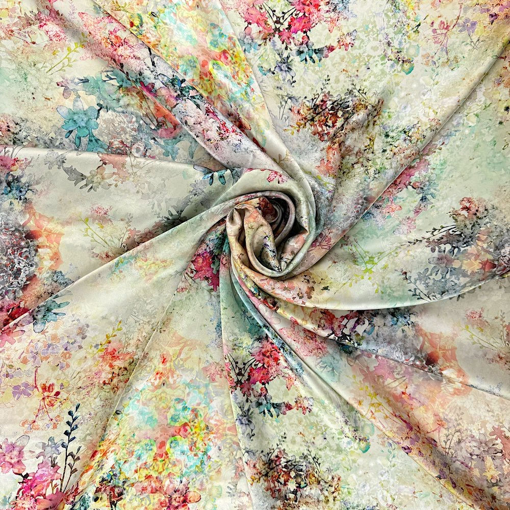 Digitally printed luxurious mulberry silk satin with the unmistakable feel and drape that only silk can offer. Suitable for slip, dress, shirt, top etc.