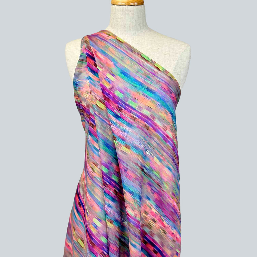 Digitally printed luxurious mulberry silk blended with fine cotton offers a beautifully soft yet versatile shirt-weight fabric that can be hand washed. Not recommended for use in tight-fitting garments.