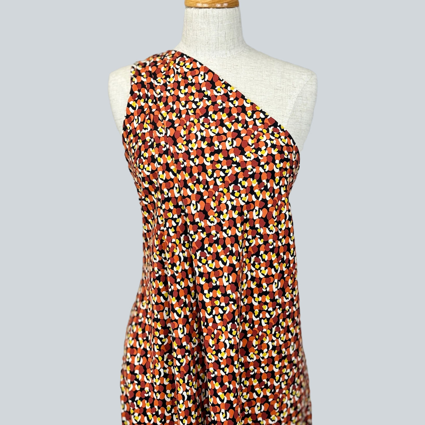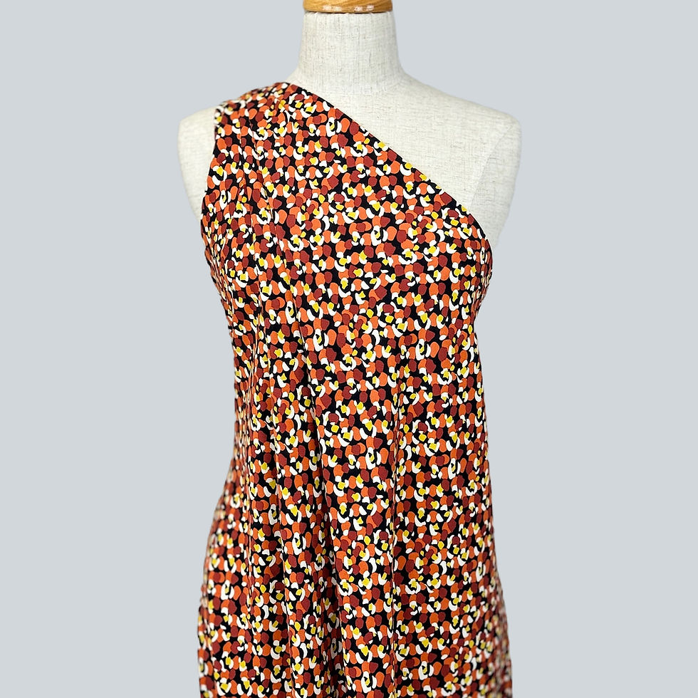This digital print viscose twill has a soft handle and great drape thanks to its 150gsm weight. This fabric is made from 100% Viscose offering a breathable and comfortable feel. Viscose twill is suitable for flowing dresses, shirt, blouse, top, etc