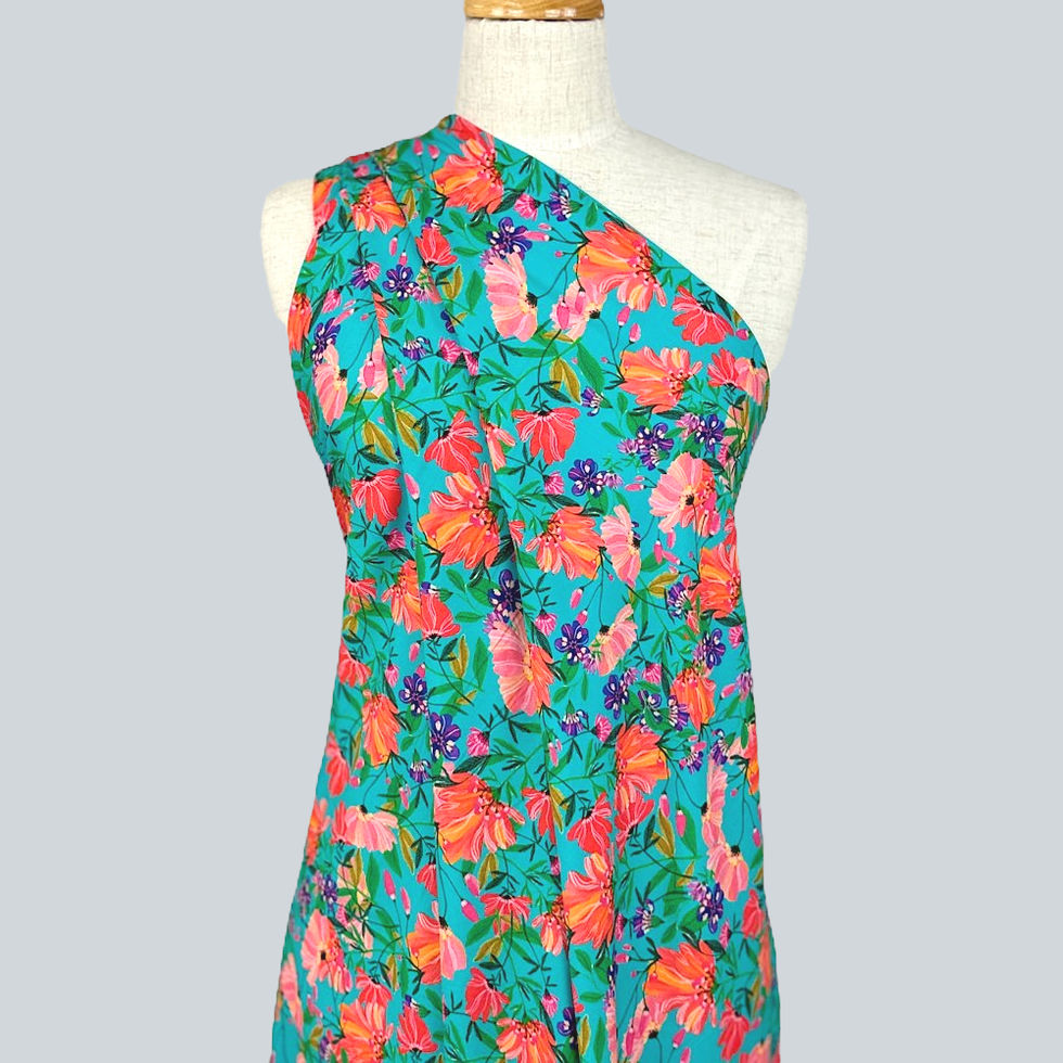 Crafted in 100% viscose challis at a fluid 90gsm, this fabric falls and moves with an elegant softness that makes it a dream to sew and wear. It is perfectly suited to flowy dresses, skirts, wide-leg pants, blouses and kimonos where the print and drape can truly shine.