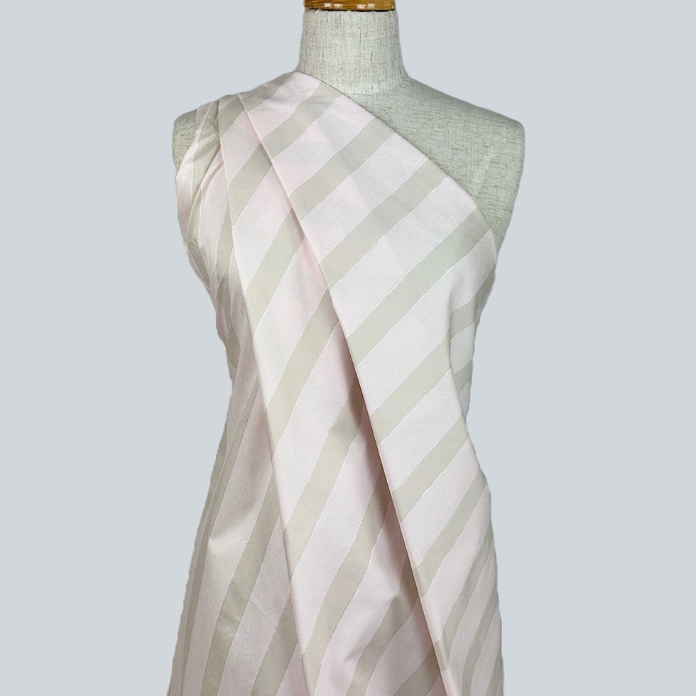 Crafted in Italy with meticulous attention to detail, this range of yarn-dyed cotton/nylon stripe fabrics offer timeless sophistication with a modern edge. Woven from high-quality Italian-spun yarns with lurex detail, these midweight fabrics feature clean, woven-in stripe patterns that lend themselves beautifully to tailored jackets, skirts, and structured separates.